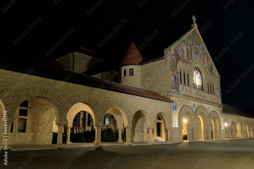 Memorial Church in Memorial Court at Night in Palo Alto, California