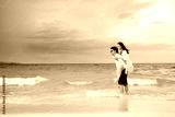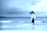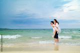 couple piggyback ride on the sea beach at Koh MunNork Island, Rayong, Thailand