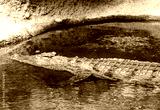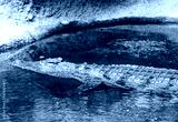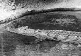 (Crocodylus niloticus) Crocodile du Nil, corps à longue queue, pattes palmées, machoire puissante à moitié submergé dans l'eau