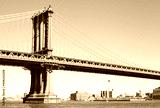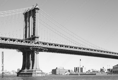 Black and white picture of Manhattan Bridge, New York City, USA.