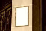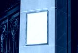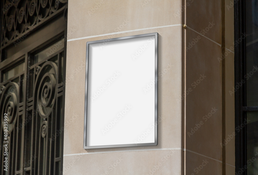 Metal frame hanging in street mockup. Template of a picture framed on a wall bathed in sunlight 3D rendering