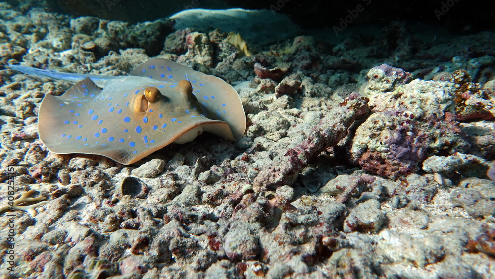 Taeniura lymma. Stingrays - Batoidea Stingray Family. Spotted Stingrays.