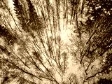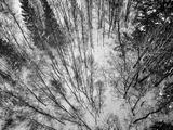 Beautiful panoramic aerial drone view on a winter landscape in the Stolowe mountains during a snowfall. The Stolowe Mountains National Park, Poland, Europe