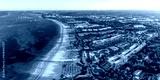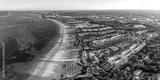 Aerial drone view of beach resort hotels with pools, umbrellas and blue water of Atlantic Ocean, Bavaro, Punta Cana, Dominican Republic