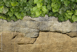Green ivy grows on old brick wall. Old stone wall with ivy as background.