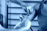 Body fat skinfold test for adults, using caliper on an upper arm, over biceps muscle