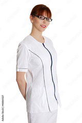 Young woman in healthcare worker uniform