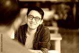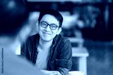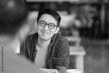 Smart attractive positive asian business male wearing glasses work remote new normal lifestyle hand use laptop tele conference onlive videocall meeting remote business ideas concept