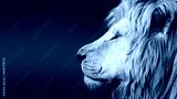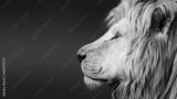 Large white male lion ( Panthera leo ) black and white facial side portrait close-up with text space. Stock