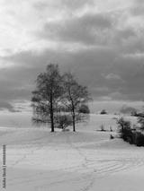 Schwarzwaldlandschaft. Rodeln auf den schneebedeckten Hängen rund um den Eichener See