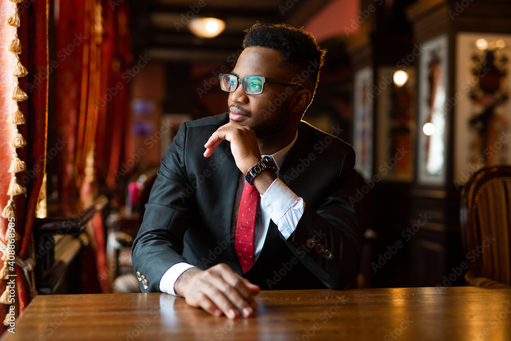 portrait of handsome young african man wearing glasses