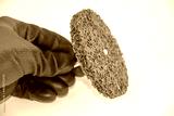 Coral circle on the drill to remove old paint and rust. The concept of self-repair car and moto