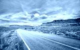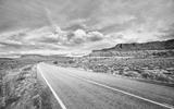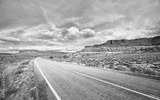Black and white picture of scenic road in Canyonlands National Park, Utah, US.
