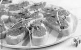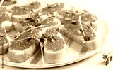 Canape with salmon red caviar. Sandwich for lunch. Delicious food.