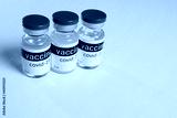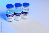 ampoules or glass medical jars with a vaccine against coronavirus infection covid-19 close-up on a light background. copy space