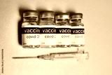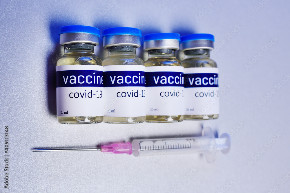 glass medical jars with the inscription "Vaccine. Covid-19". Vaccination against coronavirus infection