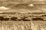 Wind farm behind field