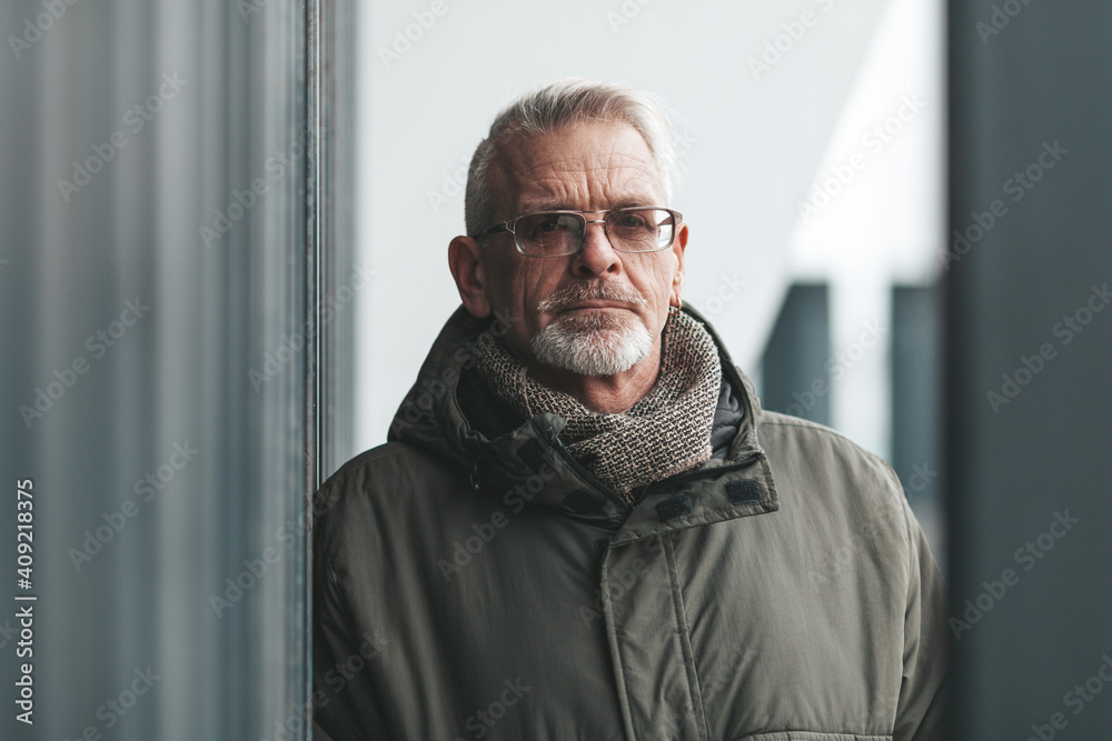 Portrait of a sad senior man in depression. Older generation, nostalgia.
