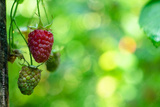 Red raspberry berry on a green bush in a summer garden