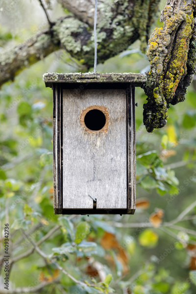 Wooden Birdhouse Hanging in Pearson-Arastradero Preserve. Palo Alto, California, USA.