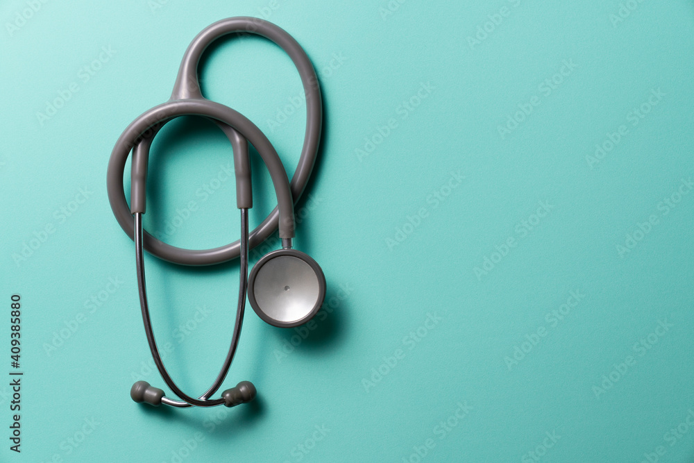 Top view of stethoscope on the green background, schedule to check up healthy concept