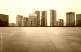 Asphalt ground and urban architectural landscape