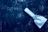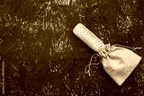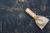 Massage comb with wooden handle on a wooden table.