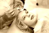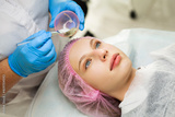 beautiful young woman at the reception at the beautician makes a rejuvenating anti-aging face mask