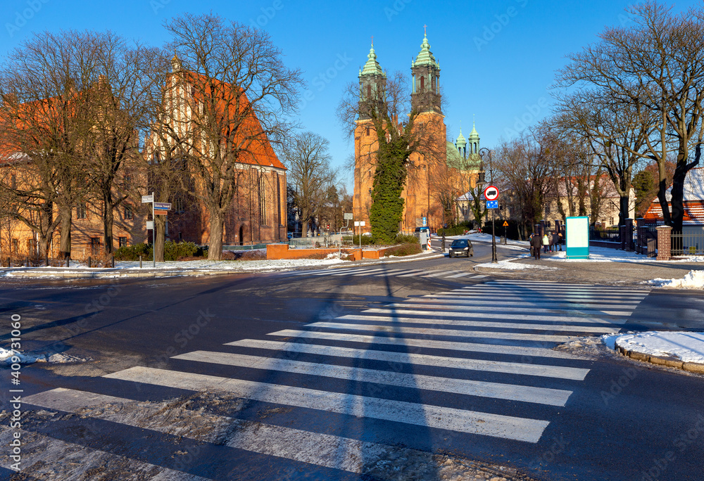 Poznan. Cathedral on Tumskiy Island on a sunny day.