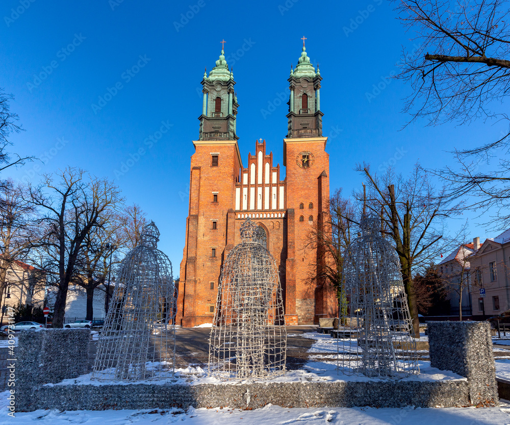 Poznan. Cathedral on Tumskiy Island on a sunny day.