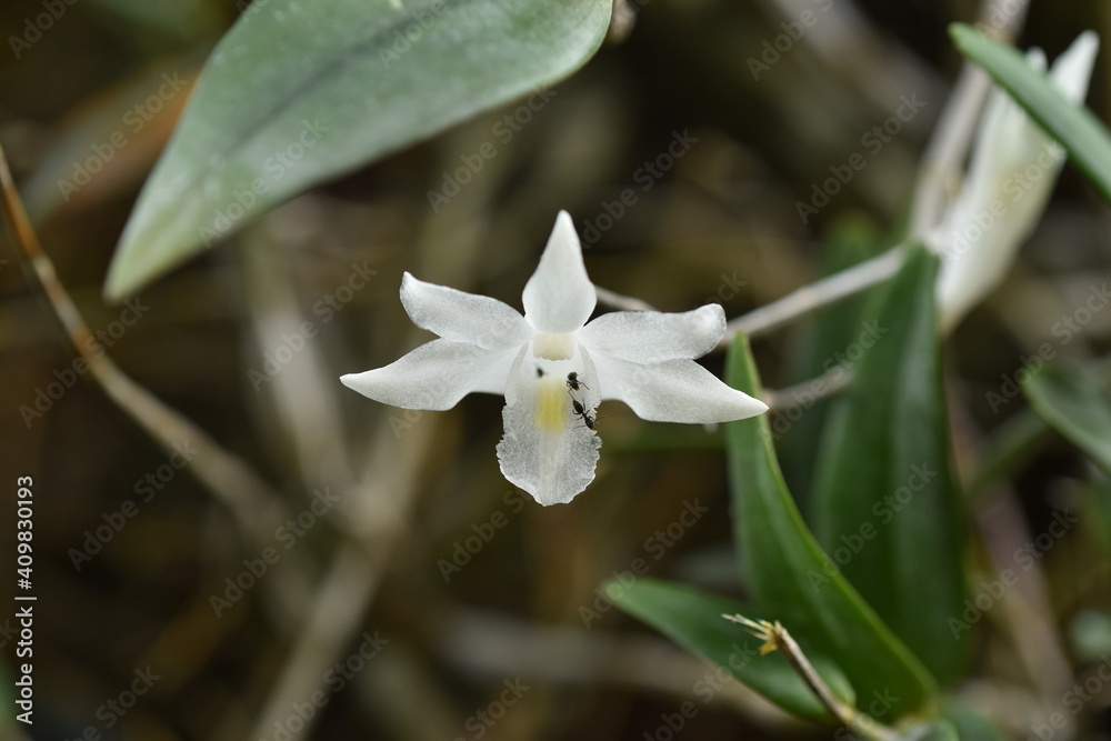 Pigeon orchid blooming beautifully in the garden. Dendrobium crumenatum.