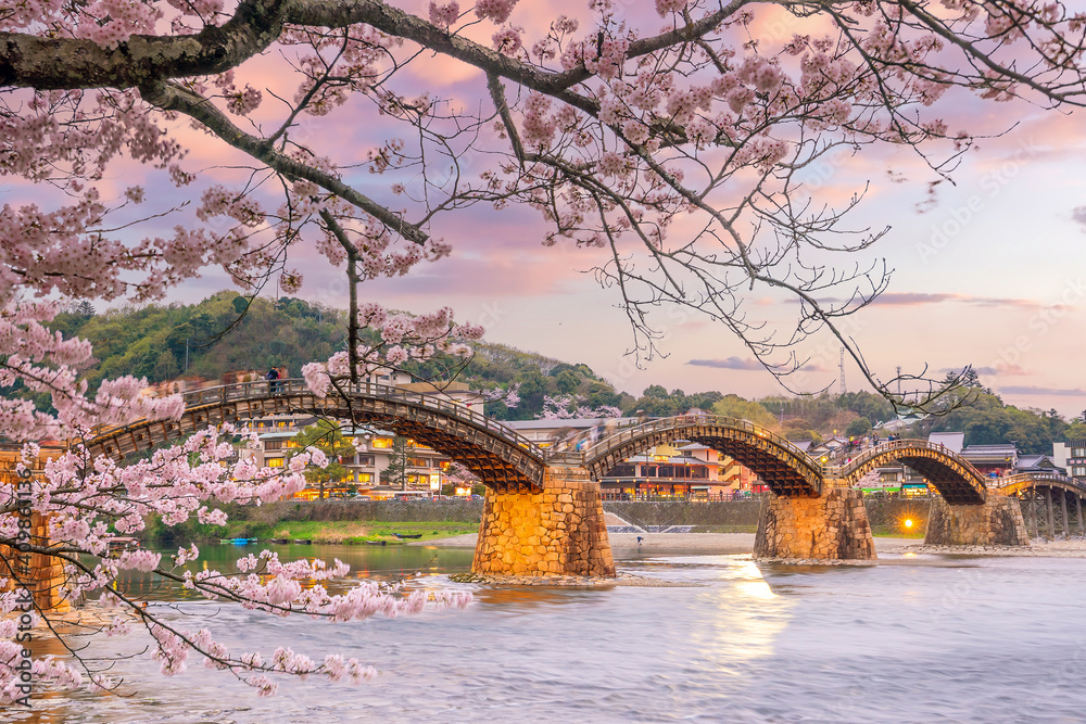 Kintaikyo Bridge in Iwakuni, Japan at sunset