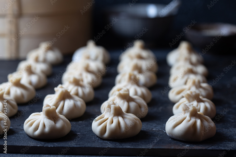 Close up of uncooked Baozi chinese dumplings. Azian dumplings