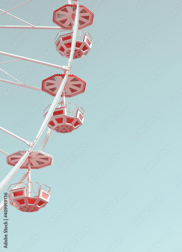 Ferris wheel against the blue sky, retro colors toning applied.