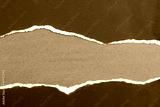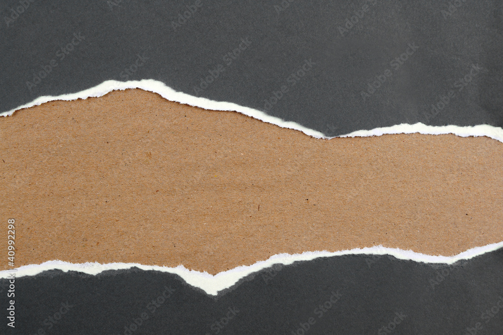 Ripped grey or black paper on brown textured background. Copy space