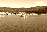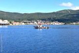 Bay with galician fishing boat in a harbor at famous Rias Baixas in Galicia Region. Muros, A Coruña, Spain.