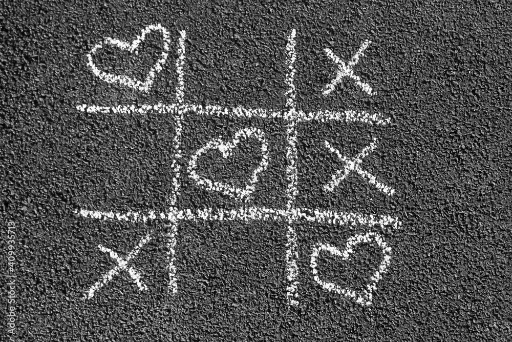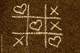 Chalk Tic Tac toe game with hearts