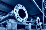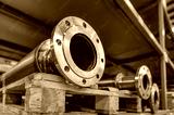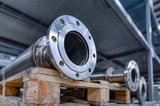 Steel pipe with thick flange. Warehouse of pipeline elements