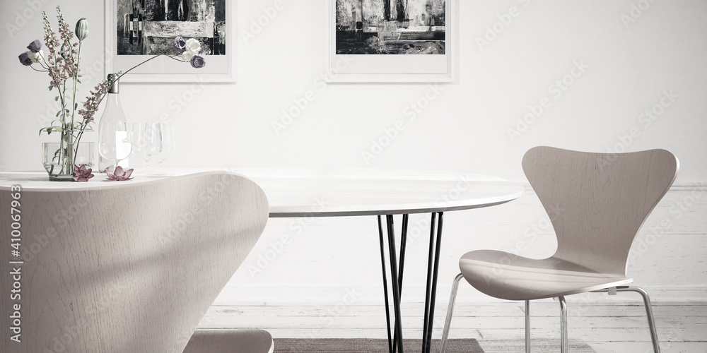 Dinning Room Furniture Design - panoramic black and white 3D Visualization