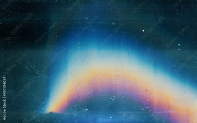 Distressed background. Colorful lens flare. Blue weathered faded stained glass with dust scratches texture smeared dirt blur rainbow light effect.