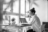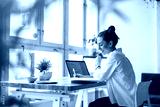 Creative young woman working on laptop in her studio