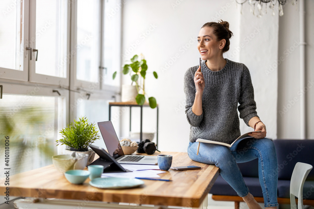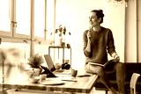 Young female freelancer working in loft office