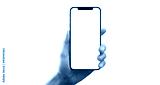 Hand holding smartphone device touching screen