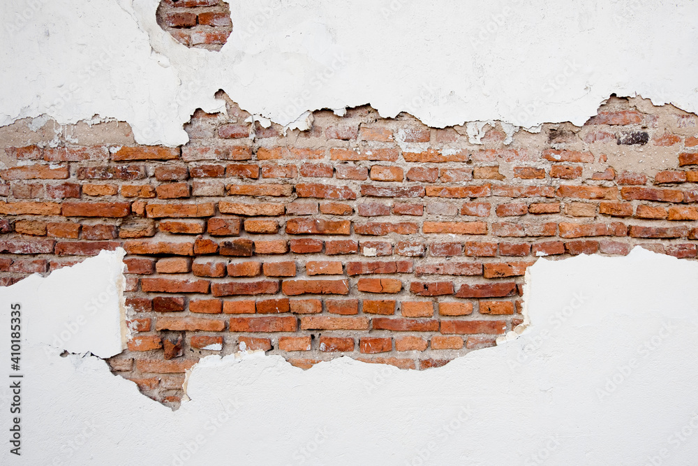 Wall the style vintage white background of old cement brick texture has orange red many horizontal block which are beautiful.