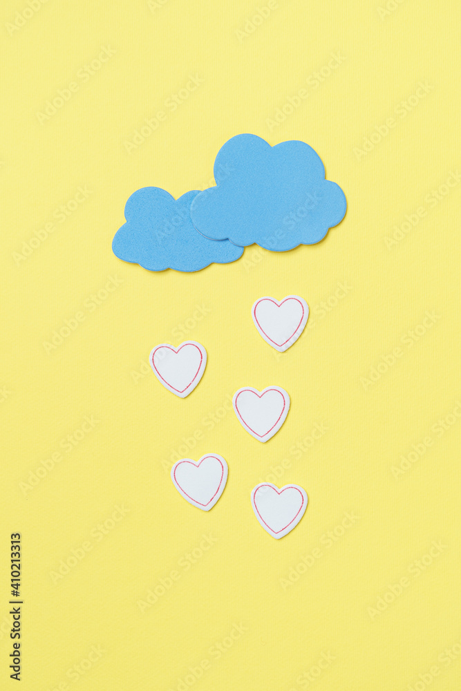 Elements in shape of hearts on yellow background. Symbols of love for Happy Women's, Mother's, Valentine's Day, birthday greeting card design.