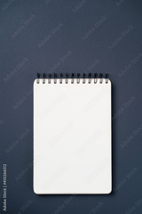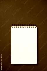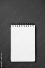 School notebook on a paper black background, spiral notepad and craft cardboard pen