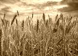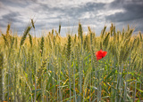 One red poppy in the wheat field