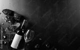 Love and Valentine's day concept made from champagne glasses , red hearts and rose on dark stone background. Top view with copy space, flat lay.