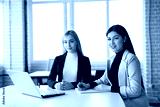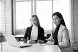 two beautiful young women in the office with a laptop