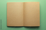 Top view a brown recycled paper notepad or notebook isolated on a green background.